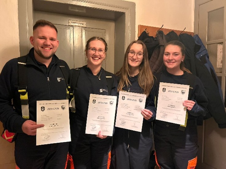 Röckingen. In der Zeit von Freitag, den 24.10.2025 bis zum Samstag, den 08.11.2025 unterzogen sich gleich vier „Floriansjünger“ der Freiwilligen Feuerwehr aus Ammelbruch einer Sanitätsausbildung (48 Unterrichtseinheiten), welche diese letztendlich auch alle mit Erfolg abschließen konnten. Geleitet wurde der in Röckingen abgehaltene „Notfallkurs“ von Axel Brand aus Dürrwangen, der seinerseits Ausbilder im Land 3 auf Feuerwehrebene ist. Die Ausbildung vermittelte sowohl theoretische als auch praktische Inhalte zu notfallmedizinischen Maßnahmen, der Behandlung von Verletzungen und speziellen Notfallszenarien. Dabei handelt es sich um eine Zusatzqualifikation für Einsatzkräfte von Organisationen wie der Feuerwehr und dem Rettungsdienst. Das vermittelte Wissen dient als Basis für weiterführende Ausbildungen wie z. B. zum Rettungssanitäter (m/w/d) und zum „Erste-Hilfe-Ausbilder“ (m/w/d). Die Gemeinde Langfurth, von der die Lehrgangsgebühren vollständig getragen wurden, gratuliert den erfolgreichen Absolventinnen und dem erfolgreichen Absolventen - die nun auch offiziell zur Mitfahrt in einem Rettungswagen berechtigt sind - und dankt diesen für deren tollen Einsatz sowie deren Engagement zum Wohle unserer Bürgerinnen und Bürger. Wir sind sehr froh und dankbar, dass wir Euch haben. Weiter so!